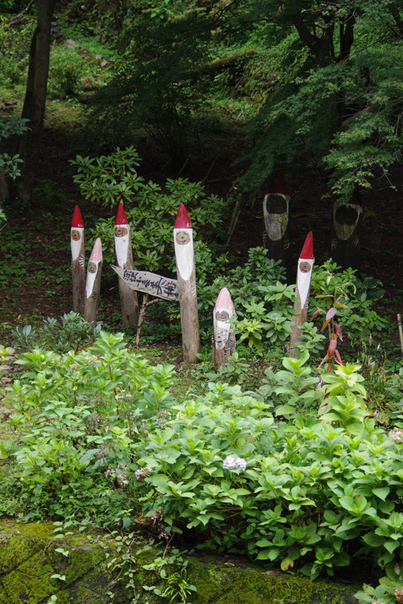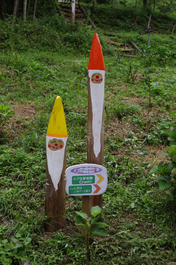さて、この美術館、武蔵五日駅からノスタルジックな感じの山間風景を歩くこと1時間ほどのところ、バスも通らない場所にあります。秋川渓谷エリア一帯に、友永氏が丸太を彫った人形「ジィージィー」たちが道しるべとして立っているので、迷うことはありません!この2日間の旅行中に、何十体見たことか。逆に、この人形がない道は間違った道だということを、山道に迷い込んで知りました…。