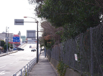細い道を歩いて行くと、湘南モノレールの湘南町屋駅あたりへ出ます。しばらくは頭上を逆さ吊り式の列車が走っている道路を歩き、次の湘南深沢駅を過ぎたあたりで左折しました。