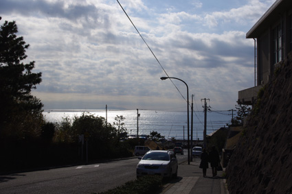 鎌倉山の個性的な邸宅などを見物しながら、海側に降りて行きました。