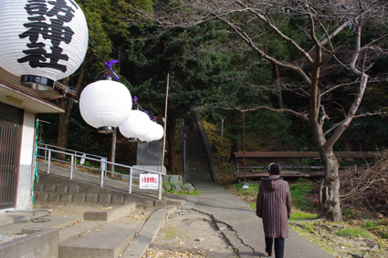 3)近所の材木屋さん、毎年の年賀飾り。4)初詣に行った近所の諏訪神社。お神酒をいただきます。