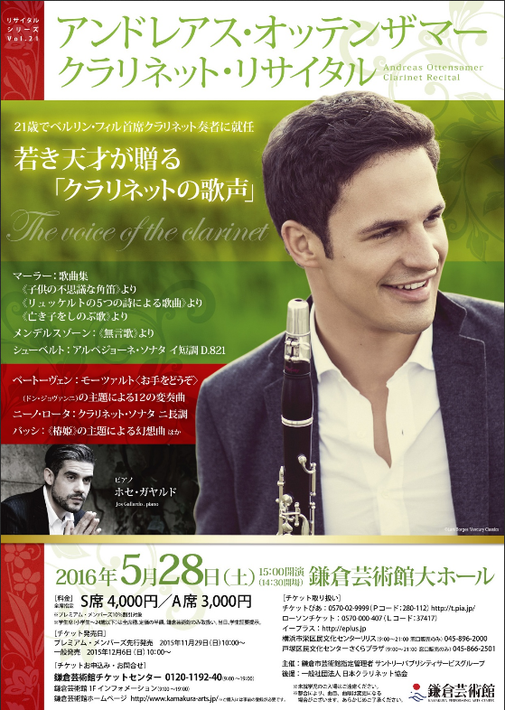 21歳の若さでベルリン・フィルの首席クラリネット奏者に就任したという天才音楽家のコンサートが、歩いて行けるホールで開かれるということでしたので、早々にチケットを買っていました。4列目の左寄りという絶好の席、やはりチケットは開催ホールで買うに限るのですね。