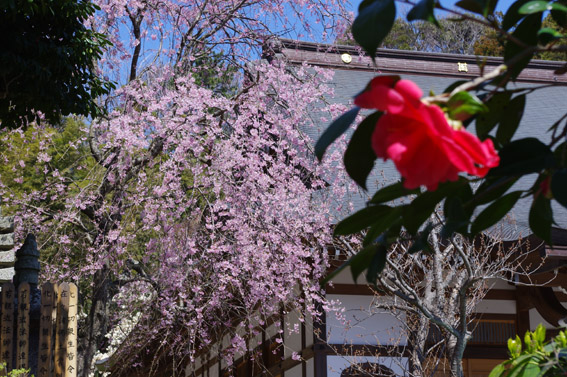 中でも久成寺の桜は見事。門外の大樹が出迎え、境内の桜は庭園風景を美しく彩っています。